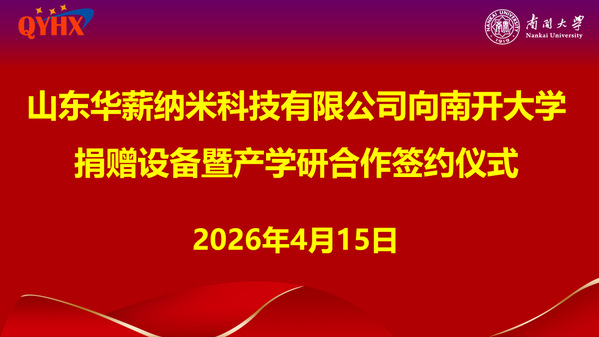 (通讯员:刘泽珺)2026年4月15日山东华薪纳米科技有限公司向南开大学捐赠设备暨产学研合作签约仪式在南开大学业务东楼顺利召开。会议由生物质资源化利用国家地方联合工程研究中心(南开大学)主任鞠美庭教授主持。山东省德州市庆云县人民政府、山东华薪纳米科技有限公司、南开大学环境科学与工程学院/生物质资源化利用国家地方联合工程研究中心(南开大学)的相关领导及专家受邀出席。